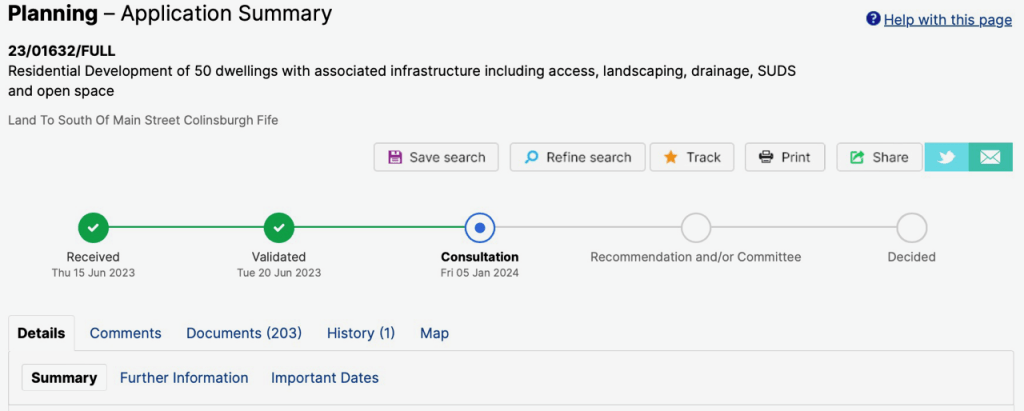 Once on the site, the Fife Planning reference you’ll need to locate and view the application is: 23/01632/FULL. Simply copy it and paste it into the relevant place.
