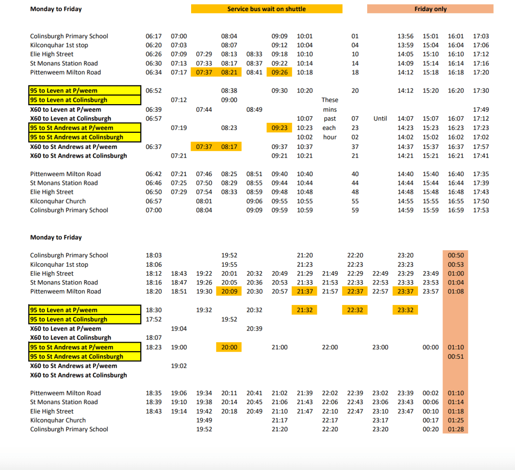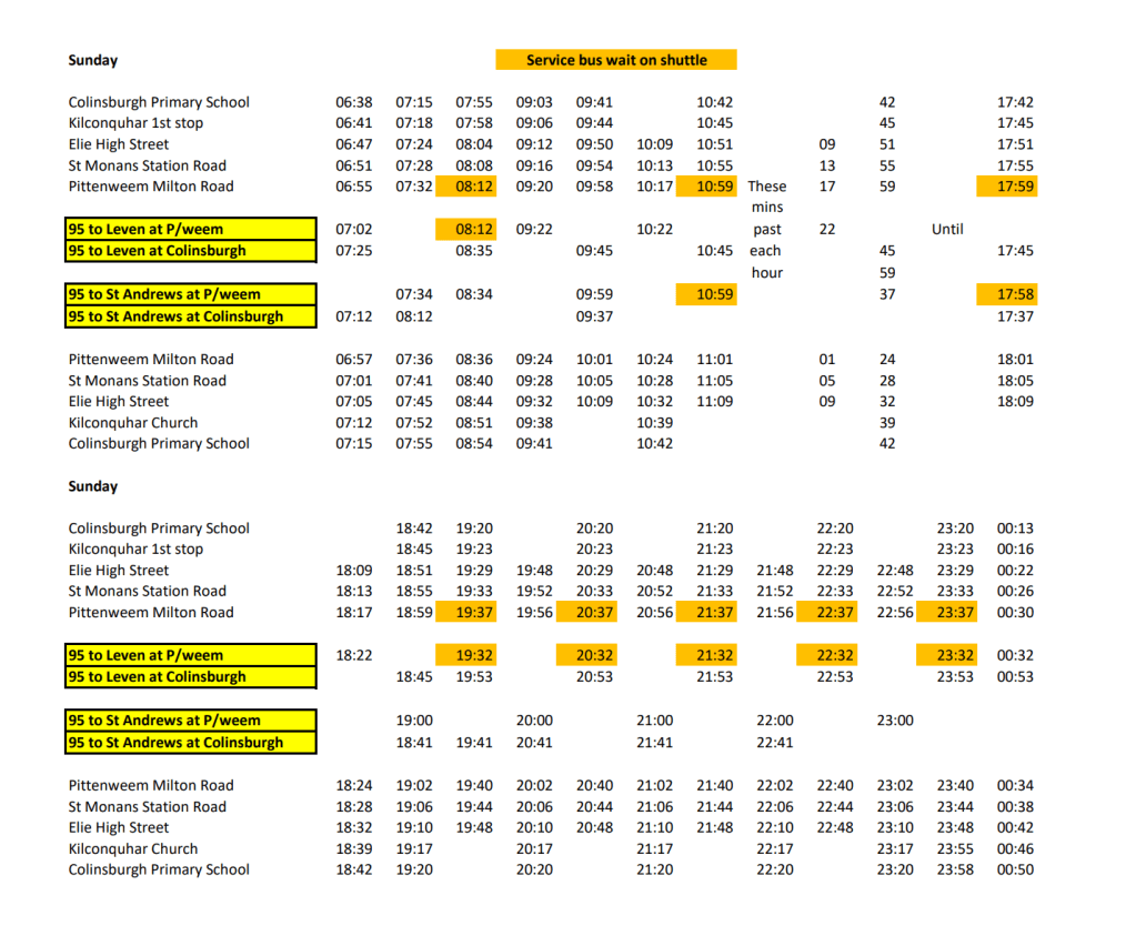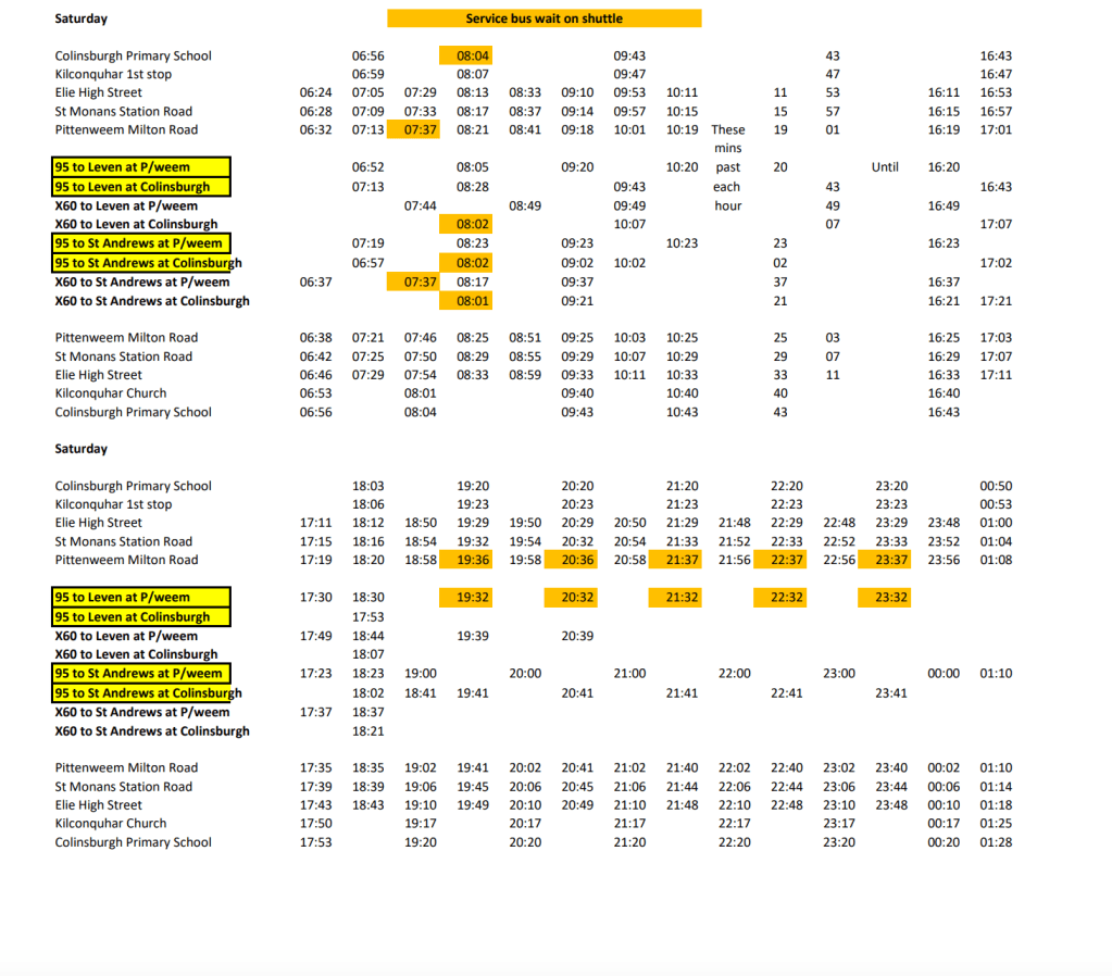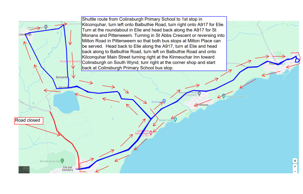 | Largoward Primary School 1335 – 1435 | Blinkbonny Road, Arncroach 1525 – 1555 |